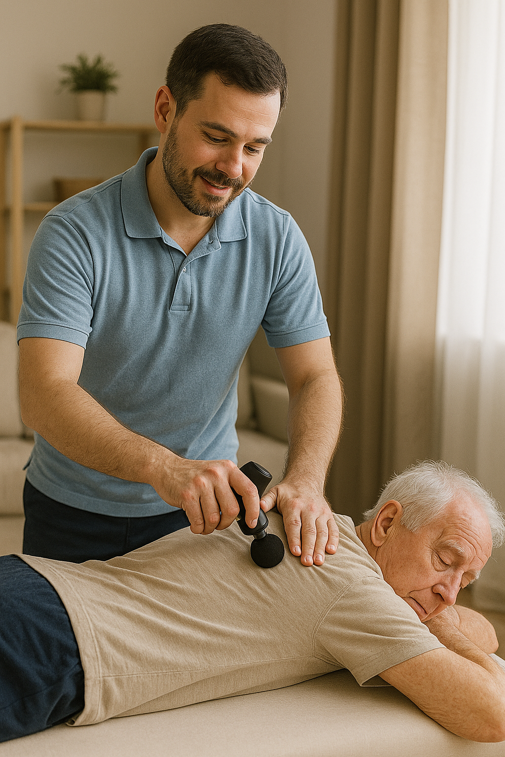 Servicio de masajes de rehabilitación y ejercicios de movilidad a domicilio, dirigido especialmente a personas mayores o en proceso de recuperación. Mediante técnicas profesionales y aparatos específicos, ayudamos a reducir dolores, mejorar la flexibilidad y mantener la autonomía, proporcionando bienestar y favoreciendo una mejor calidad de vida en el entorno familiar.