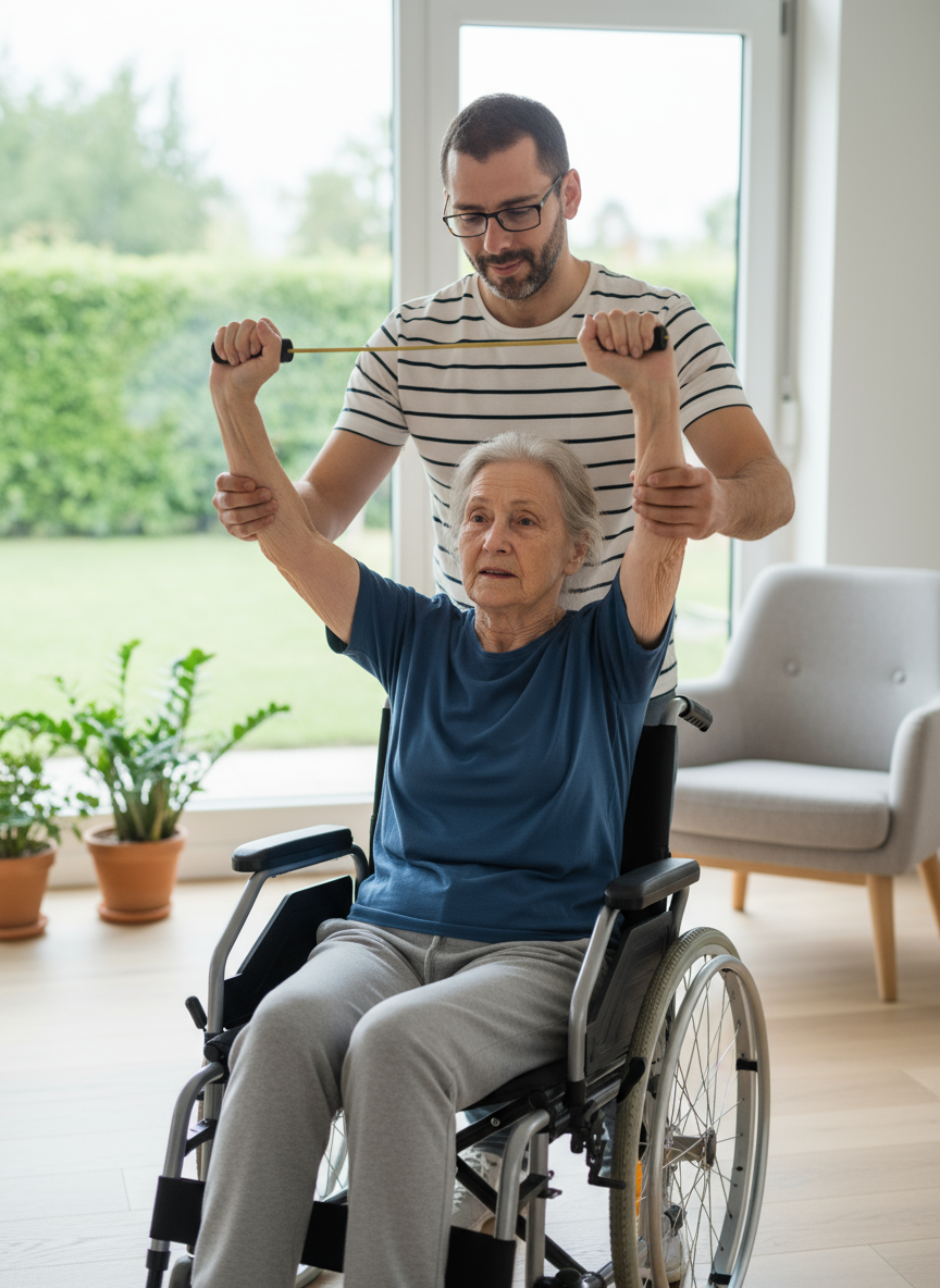 ✔ Movilización básica y ejercicios suaves de mantenimiento